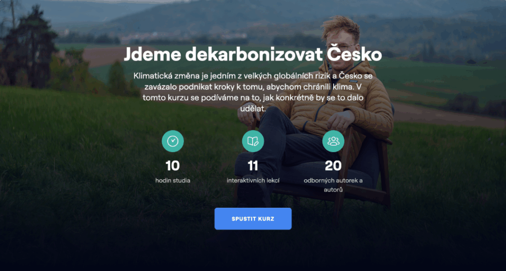Online kurz je volně dostupný na dekarbonizujemecesko.cz. Je určen všem, kteří mají zájem podílet na efektivní, datově podložené dekarbonizaci Česka. Ať se jedná o specialisty udržitelnosti ve firmách, učitele, studenty nebo jednoduše všechny, kteří se chtějí dozvědět data a fakta. Po absolvování účastníci získají certifikát a přehled o tom, jak lze snižování emisí promýšlet a realizovat v praxi.*